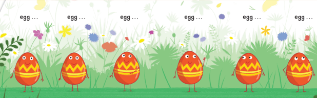 Egg is the only word used in the book where the pictures tell the story of a different egg trying to fit in.