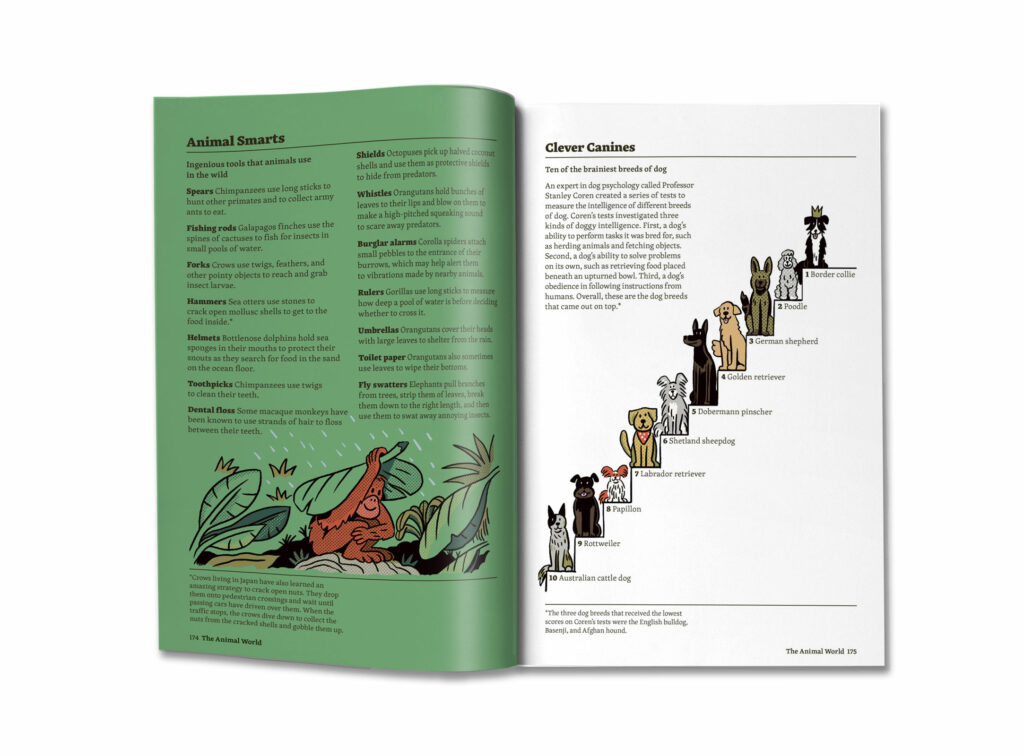 Highly engaging spreads use a mix of photography and captivating illustrations, both informative and humorous.
