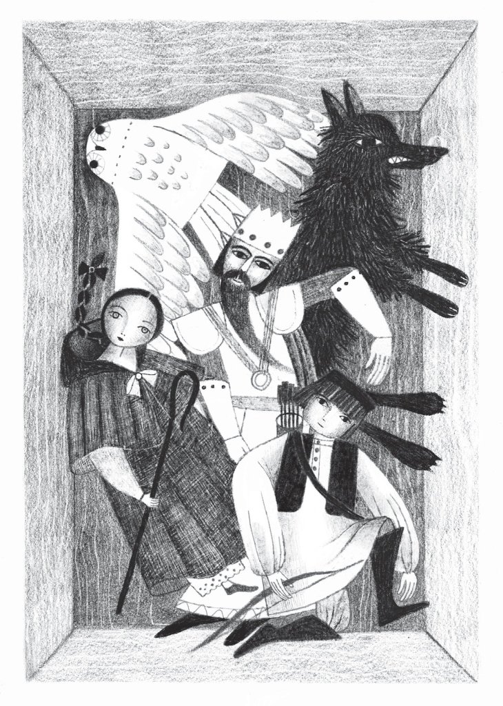 Once, there was a king. And a wolf. And a girl with a shepherd’s crook. And a boy with a bow and arrow. And also, there was an owl…